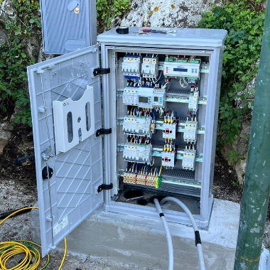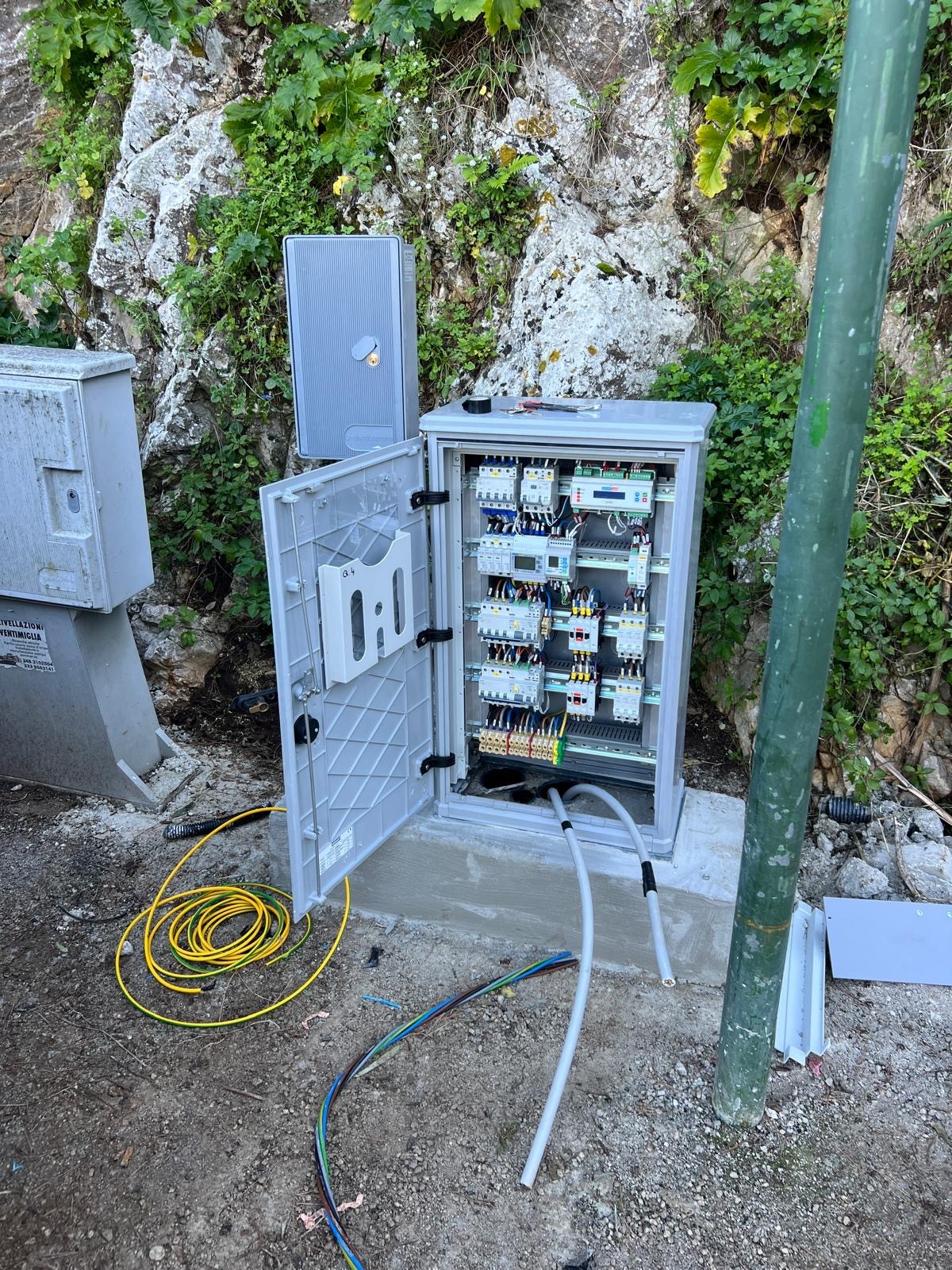Foto allegate: i lavori di efficientamento dell'illuminazione di Monte Pellegrino e uno dei nuovi quadri di alimentazione installati