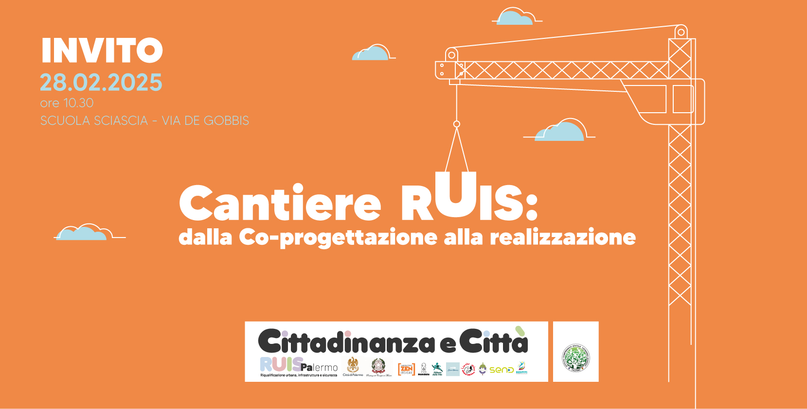 Venerdì 28 febbraio alle ore 10.30, presso i locali dell’Istituto comprensivo statale Leonardo Sciascia di Via Francesco de Gobbis, nel corso dell'iniziativa "Cantiere Ruis, dalla co-progettazione alla realizzazione", sarà illustrato alla presenza delle istituzioni, degli Enti del terzo e delle scuole coinvolte lo stato dell’arte del progetto RUIS di Riqualificazione Urbana Infrastruttura e Sicurezza finanziato dall’Assessorato alle Attività sociali e socio-sanitarie del Comune di Palermo a valere sul “Programma straordinario di intervento per la riqualificazione urbana e la sicurezza delle periferie delle città metropolitane e dei comuni capoluogo di provincia” della Presidenza del Consiglio dei Ministri con una dotazione complessiva di un milione e mezzo di euro.