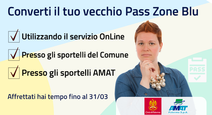 Da lunedì 20 marzo parte il servizio di conversione dei pass delle nuove zone blu per il parcheggio in area tariffata nelle quattro postazioni dell’AMAT e, sempre da lunedì, sarà possibile convertire i pass delle vecchie zone “P” anche attraverso una procedura online attivata dalla SISPI.