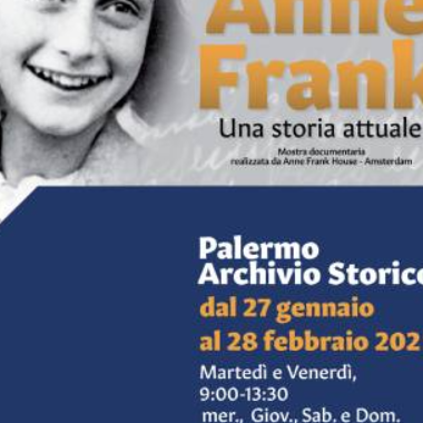 Oggi pomeriggio, alle ore 15.30, in occasione della Giornata della memoria, nella sala Almeyda dell’Archivio storico comunale, verrà inaugurata la mostra documentaria itinerante “Anne Frank, una storia attuale”, realizzata dalla “Anne Frank House di Amsterdam”, in collaborazione con il Consolato onorario del Regno dei Paesi Bassi di Palermo, il Comune di Palermo – Archivio storico comunale e i suoi partner locali.