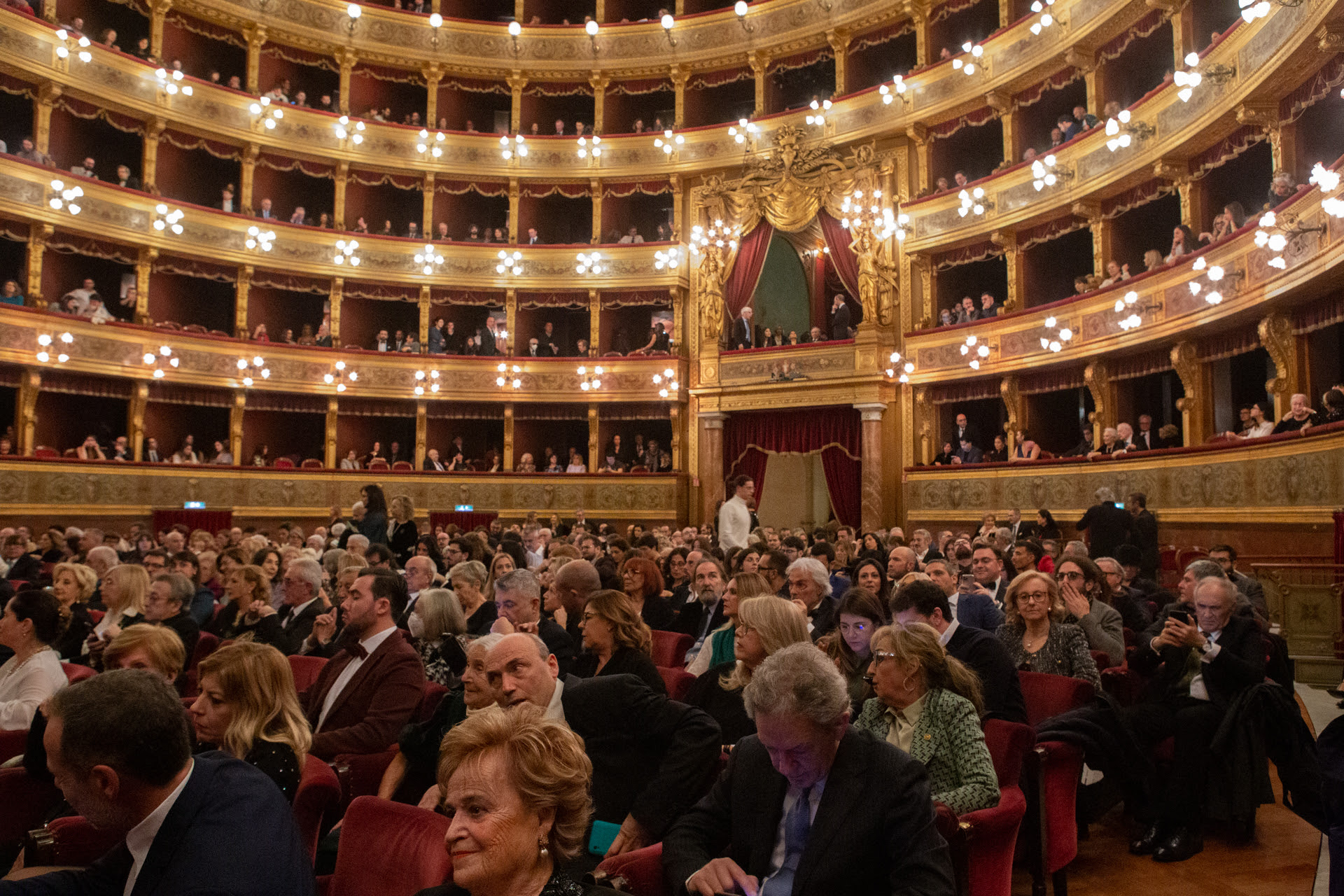 Comincia con una dedica commossa del sovrintendente Marco Betta alla memoria del Maestro Claudio Abbado, la serata che ha visto il ritorno sul palco del Teatro Massimo di Palermo, dopo aver girato il mondo, di Rigoletto, l’allestimento del melodramma di Verdi diretto nel 2018 da John Turturro e realizzato dal Massimo in coproduzione con il Teatro Regio di Torino, l’Opéra Royal di Liègi e la Shaanxi Opera House cinese. Un ritorno accompagnato da applausi a scena aperta e bis reclamati a gran voce che ha visto sul podio uno dei più grandi direttori della scena internazionale, il Maestro Daniel Oren, calamitare l’attenzione del pubblico con la sua appassionata e trascinante direzione dell’Orchestra del Teatro Massimo. Dieci minuti di applausi per gli interpreti: dal baritono mongolo Amartuvshin Enkhbat, già indimenticabile Rigoletto nel 2018, al soprano Giuliana Gianfaldoni, applauditissima Gilda, che insieme a Enkhbat ha regalato al pubblico il bis di “sì, vendetta, tremenda vendetta”, al tenore peruviano Ivan Ayon Rivas, nel ruolo del Duca di Mantova, e per la regia dell’opera, ripresa dalla giovane e affermata regista Cecilia Ligorio, che aveva già affiancato Turturro nell’allestimento di cinque anni fa. Di livello tutto il cast che ha visto negli altri ruoli Agostina Smimmero (Giovanna); Aleksei Kulagin (Sparafucile); Valeria Girardello (Maddalena); Massimiliano Chiarolla (Borsa); Alessio Verna (Marullo); Italo Proferisce (Ceprano); Nicolò Ceriani (Monterone); Emanuela Sgarlata (Contessa di Ceprano/Paggio); Enrico Cossutta e Federico Cucinotta (Usciere di corte). Le scene, di grande impatto e accuratezza sono di Francesco Frigeri, i costumi sontuosi sono firmati da Marco Piemontese, le luci di Alessandro Carletti sono riprese da Ludovico Gobbi, mentre la coreografia è di Giuseppe Bonanno. Orchestra, Coro e Corpo di ballo del Teatro Massimo, Maestro del Coro Salvatore Punturo, direttore del Corpo di Ballo Jean-Sébastien Colau. Le repliche dell’opera, in scena fino al 28 gennaio, vedranno nel cast alternativo il baritono ispano-americano Daniel Luis De Vicente nel ruolo del titolo, il tenore Ioan Hotea, di ritorno a Palermo dopo I Capuleti e i Montecchi, in quello del Duca di Mantova, mentre Gilda è il soprano palermitano Federica Guida che torna sul palcoscenico del Massimo dopo il successo come Musetta nella Bohème dell’anno scorso.