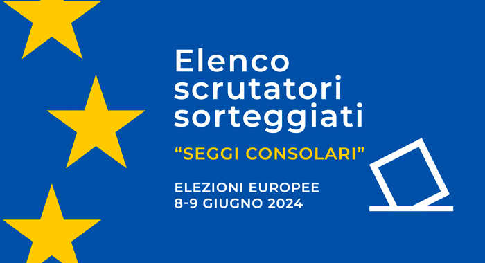 La Commissione Elettorale Comunale in data 22/05/2024, ha provveduto alla nomina degli scrutatori dei “seggi consolari” tramite sorteggio in adunanza pubblica presso gli Uffici dell'Elettorato siti in Piazza Giulio Cesare ,52.