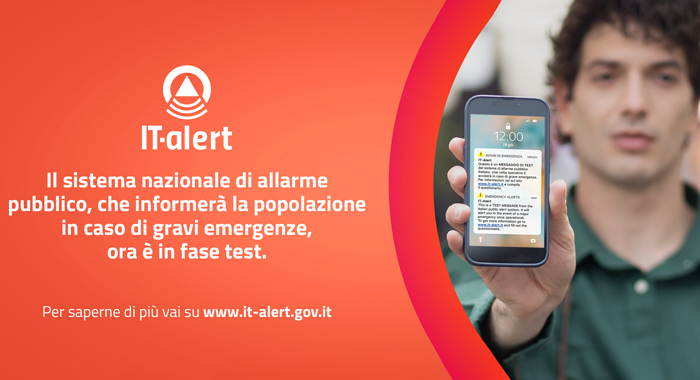 Mercoledì 5 luglio 2023, alle ore 12.00, tutti i dispositivi mobili connessi alle reti telefoniche in Sicilia riceveranno un messaggio "IT-Alert": il nuovo servizio di allarme pubblico messo a punto dal Dipartimento nazionale di Protezione Civile che consentirà di avvisare, tempestivamente, la popolazione in caso di gravi emergenze o imminenti pericoli. La sperimentazione che sarà fatta, oltre che in Sicilia anche in altre 4 regioni, servirà per verificare le funzionalità di questa tecnologia e migliorarla. Una volta operativa, consentirà di raggiungere chiunque si trovi nella zona interessata da situazioni di pericolo reale o potenziale, purché abbia il telefono acceso e connesso alla rete di telefonia mobile.