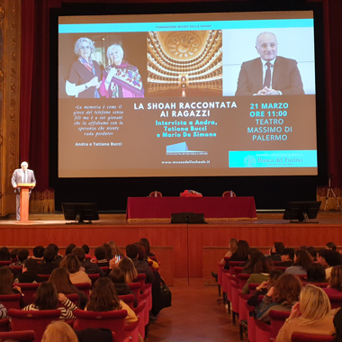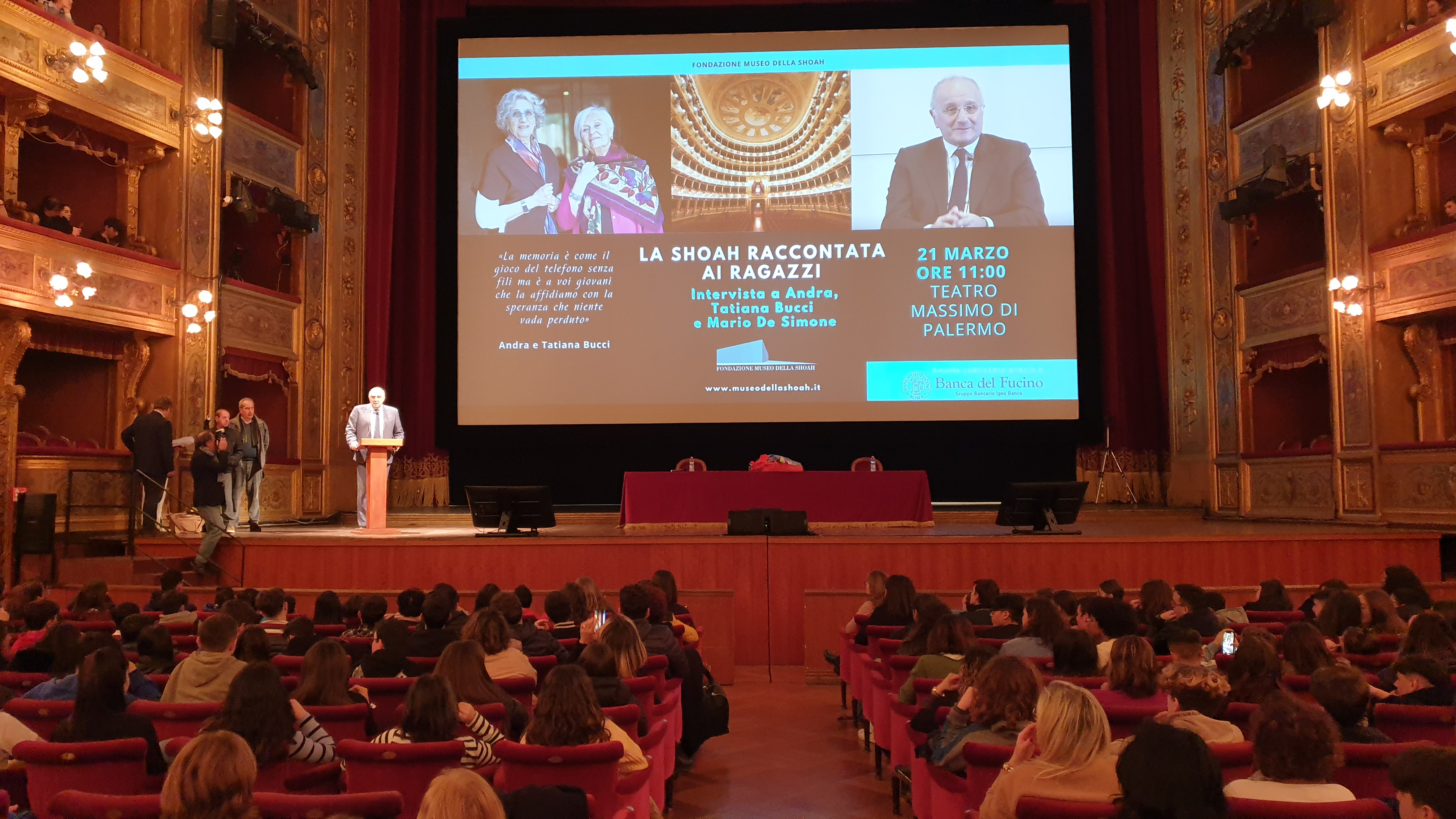 «La mafia, come ogni dittatura, costituisce una privazione della libertà, un’offesa alla democrazia e un’offesa all’umanità. Oggi, in occasione della Giornata della Memoria e dell’Impegno in ricordo delle vittime innocenti delle mafie, al Teatro Massimo, la Fondazione Museo della Shoah ha riunito studenti e studentesse delle scuole siciliane, provenienti dalle diverse province, per ascoltare il racconto di Andra e Tatiana Bucci, testimoni della Shoah, insieme a quella del cugino Mario De Simone, e vivere insieme un momento di riflessione. È proprio a scuola, luogo privilegiato per l’educazione alla democrazia, che i giovani imparano il valore della conoscenza e della memoria che ci aiuta a dire no alla violazione dei diritti degli uomini e delle donne, ma soprattutto no alle mafie. Iniziative come quelle di oggi sono importanti per condividere momenti preziosi che alimentano la cultura delle giovani generazioni, principale strumento di contrasto verso le numerose forme di negazione delle libertà nella nostra società».