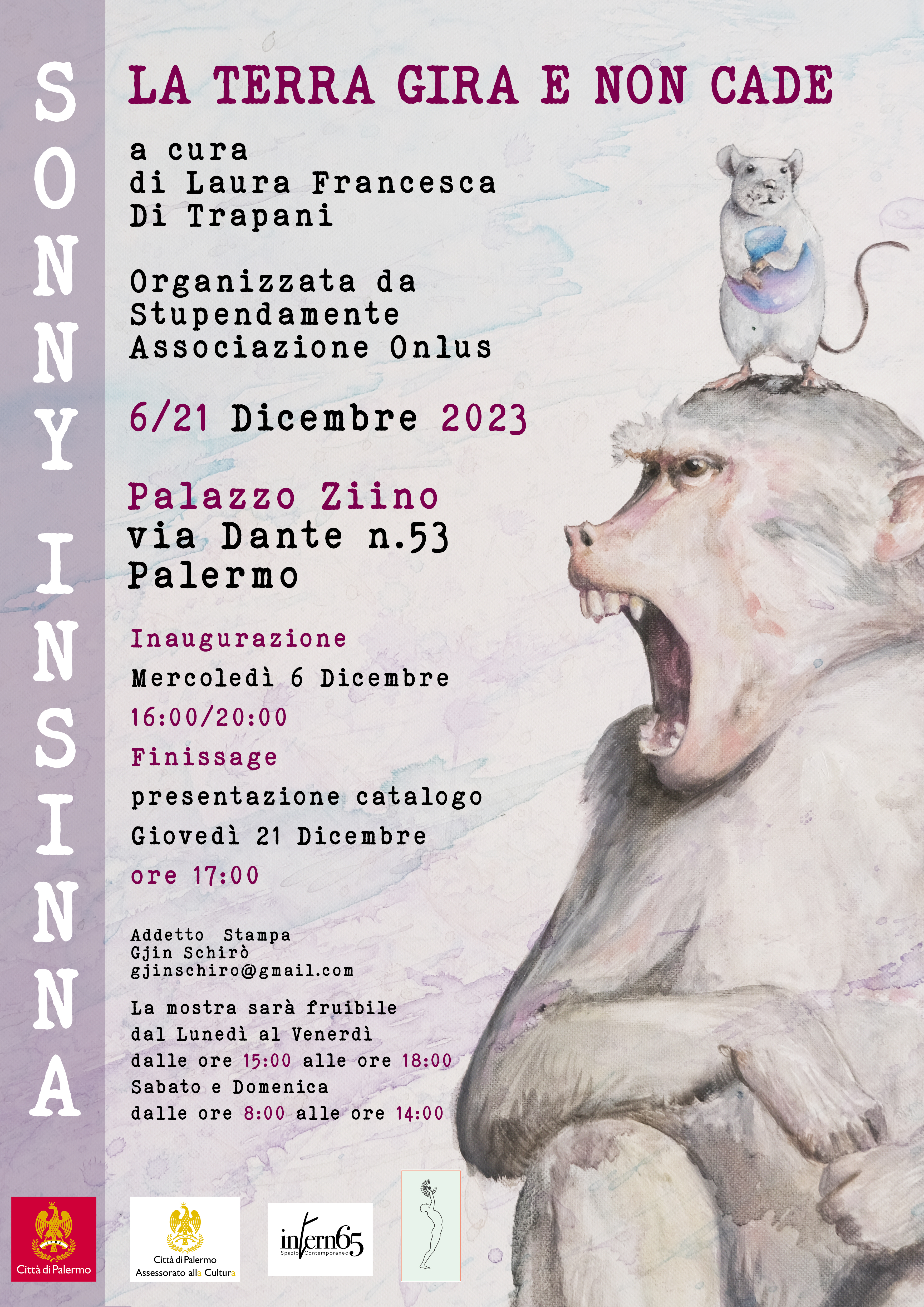 Mercoledì 6 dicembre prossimo verrà inaugurata a Palazzo Ziino la mostra di Sonny Insinna dal titolo "La terra gira e non cade”.