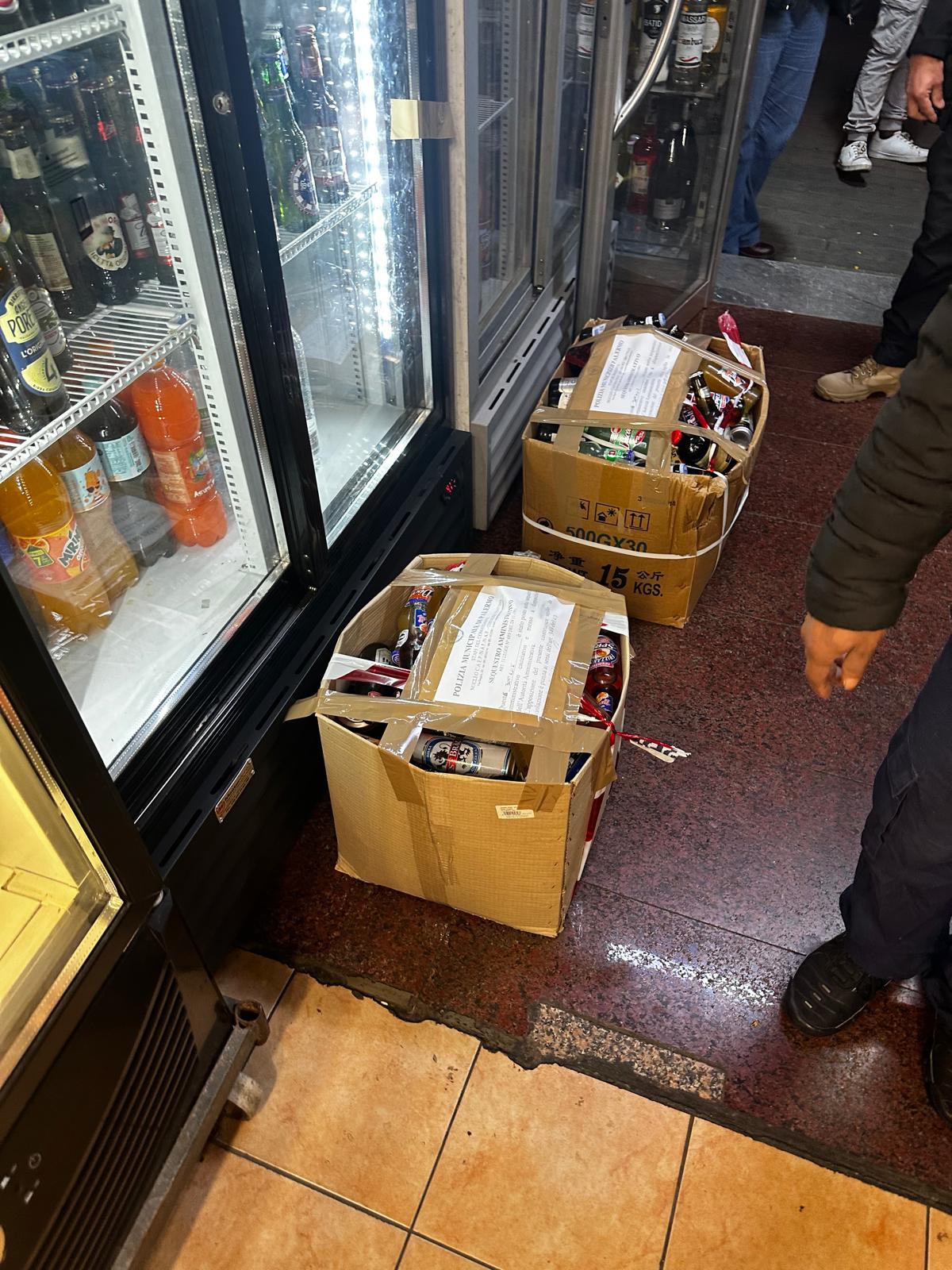 Si è proceduto, quindi, al sequestro cautelare amministrativo di 4.449 bevande alcoliche e superalcoliche in contenitori di vetro e 1.661 bevande alcoliche in lattina.