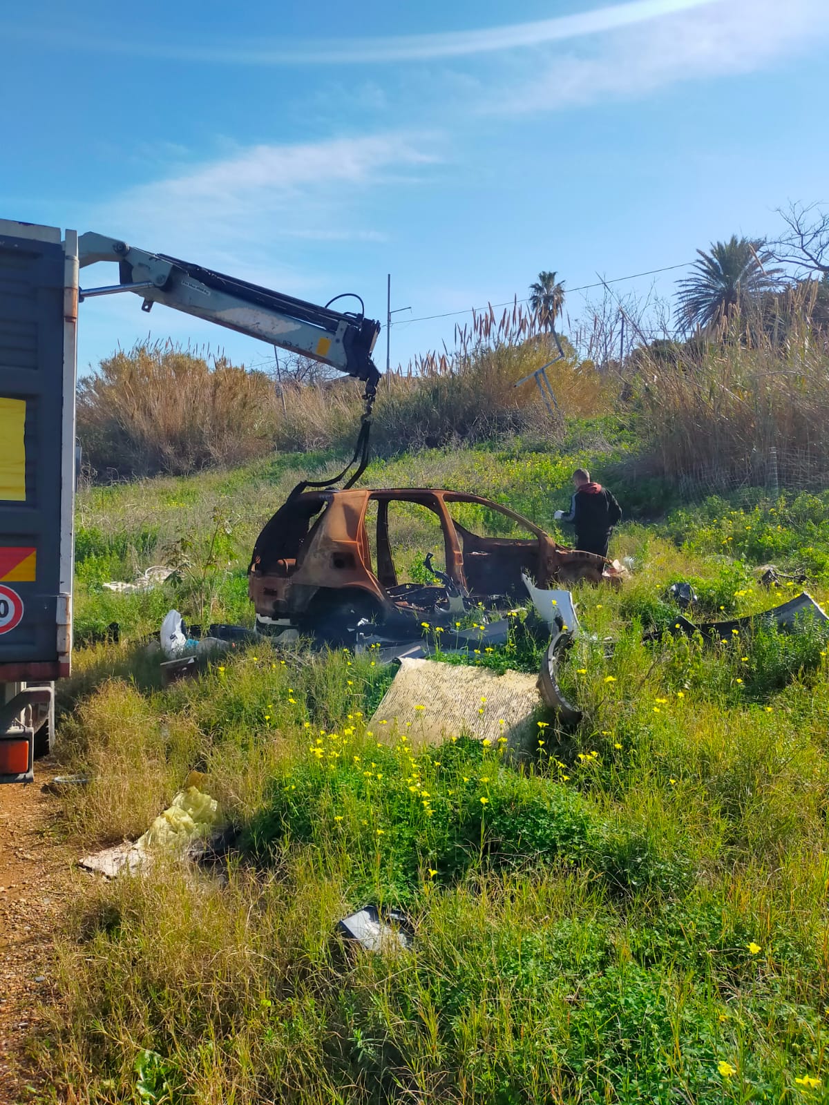 Polizia Municipale. Rimosse 7 carcasse di automobili dal parco Libero Grassi, sul litorale di Acqua dei Corsari