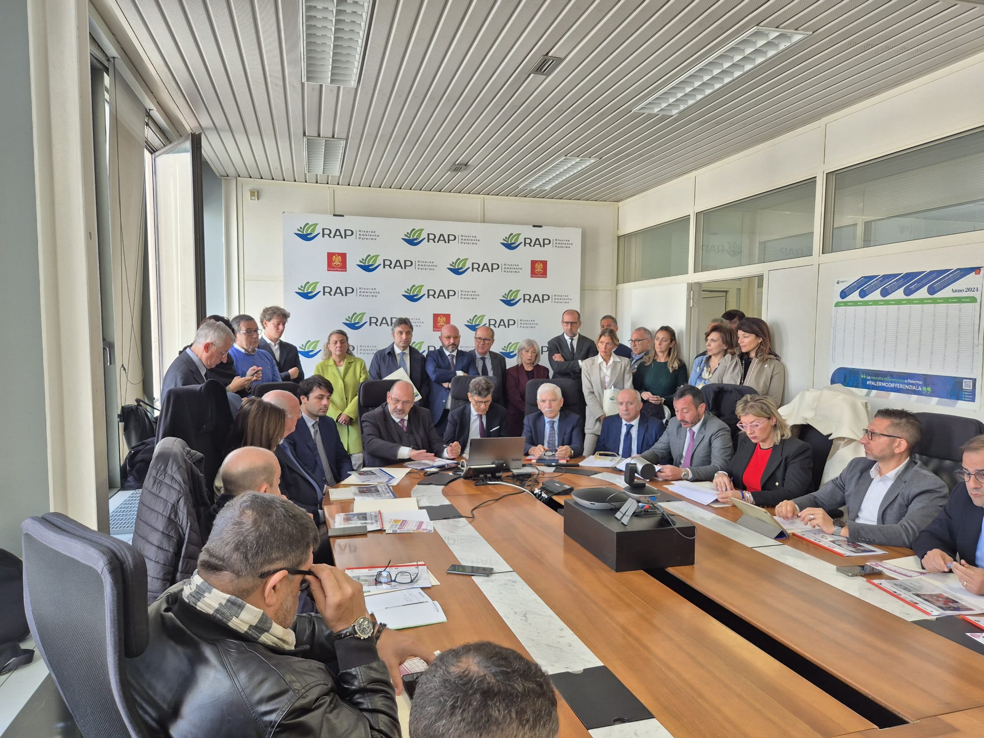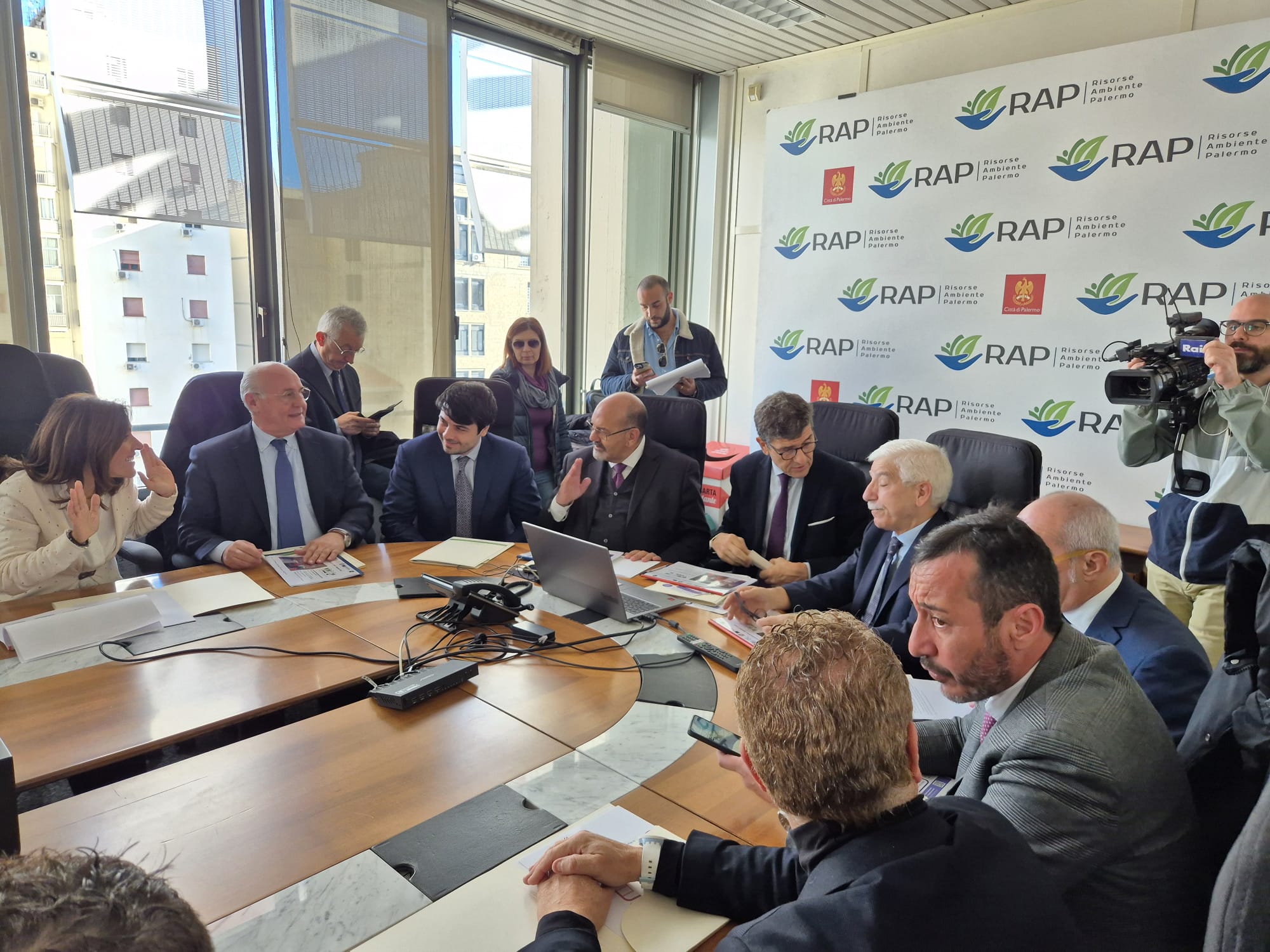Questo è quanto emerso dalla conferenza stampa che si è tenuta ieri nella sede della Rap di piazzetta Cairoli alla presenza del suo Presidente, Giuseppe Todaro, degli assessori Pietro Alongi e Giuliano Forzinetti, del presidente del Consiglio Comunale Giulio Tantillo, dei presidenti di Commissione Figuccia, Imperiale, Terrani, Zacco, di diversi consiglieri comunali delle Commissioni, dei presidenti di Circoscrizione, del presidente della SRR Area Metropolitana Natale Tubiolo.