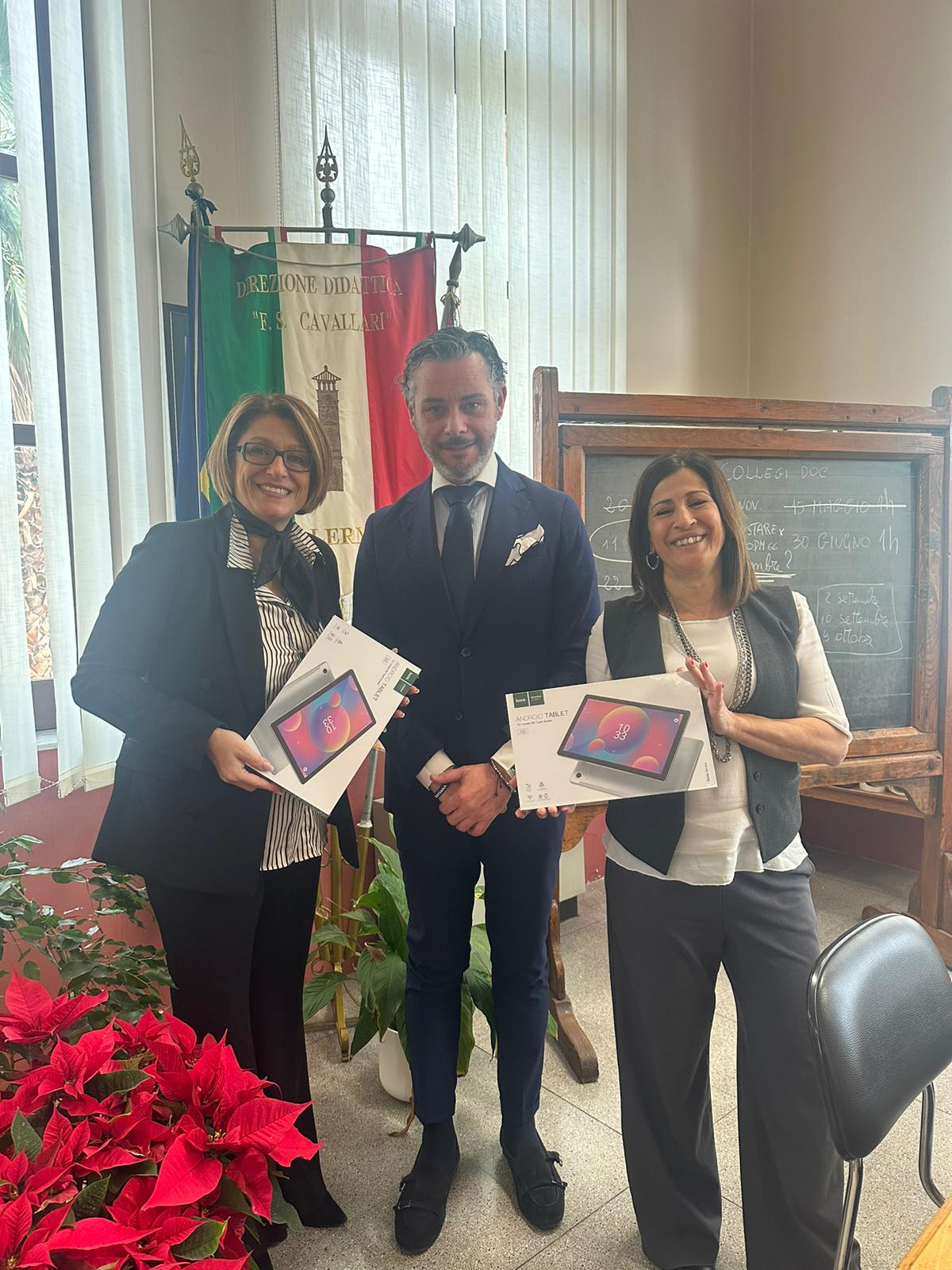 Il consigliere della II Circoscrizione di Palermo, Claudio Sala (DC), ha donato due tablet alla direzione scolastica dell'Istituto "Cavallari" di Palermo, dopo il furto avvenuto lo scorso dicembre all'interno dei locali di corso dei Mille.