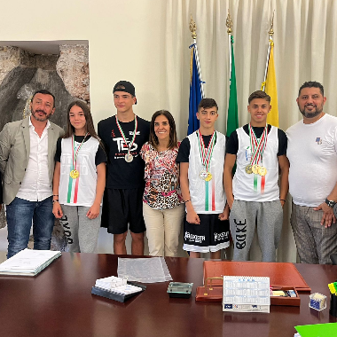 Nella foto l’assessore Figuccia e il consigliere Imperiale con i ragazzi neo campioni italiani e i loro tecnici