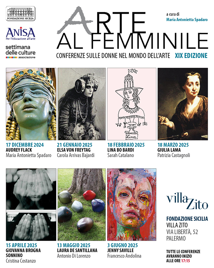 La rassegna Arte al femminile, ideata e organizzata da Maria Antonietta Spadaro per Anisa/Palermo e Settimana delle Culture, giunge quest’anno alla XIX edizione. Abbiamo dato visibilità a circa 170 artiste di ogni tempo e ogni luogo, molte sconosciute al grande pubblico, poche quelle note e alcune solo a pochi studiosi. Relatrici e relatori, non solo siciliani, hanno suscitato interesse sempre crescente nei confronti di una platea affascinata dalla scoperta di figure spesso cancellate dalla storia e riportate alla luce.