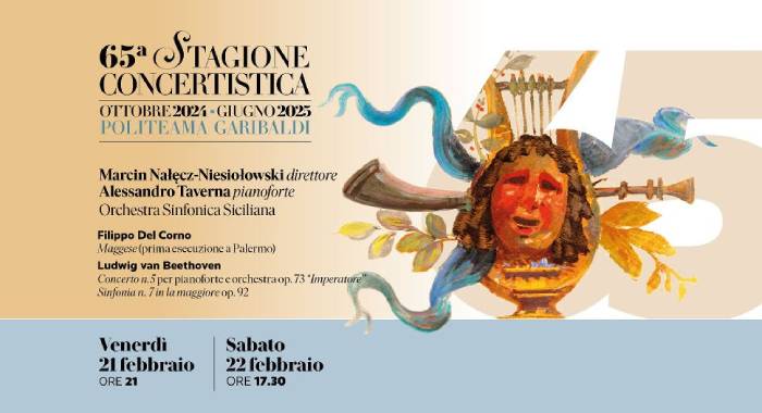Ad apertura del concerto verrà eseguito, in prima esecuzione a Palermo, Maggese del compositore milanese Filippo Del Corno. Seguirà l’esecuzione del celebre pianista Alessandro Taverna, ospite delle maggiori istituzioni musicali di tutto il mondo, di un brano di straordinario virtuosismo: l’amatissimo Concerto n. 5 per pianoforte e orchestra in mi bemolle maggiore op. 73 “Imperatore” di Ludwig van Beethoven. Conclude il programma la Sinfonia n. 7 in la maggiore op. 92 sempre di Beethoven.