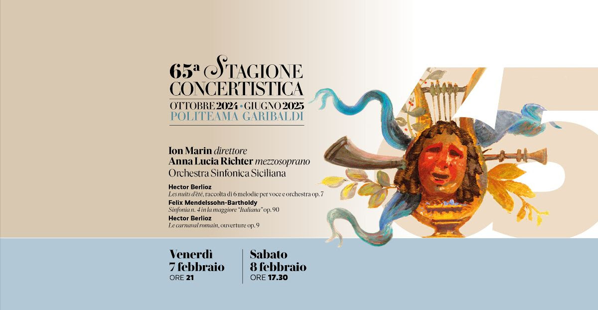 Il lungo viaggio dell’Orchestra Sinfonica Siciliana nel repertorio della tradizione classica europea, proposto nell’ambito della 65a Stagione Concertistica 2024/2025, prosegue venerdì 7 febbraio (ore 21) e sabato 8 febbraio (ore 17.30) al Politeama Garibaldi con due appuntamenti affidati alla bacchetta di Ion Marin, , direttore d'orchestra di fama internazionale, ospite ricorrente delle maggiori orchestre del mondo come i Berliner Philharmoniker, la Gewandhausorchester di Lipsia, la Staatskapelle di Dresda, la London Symphony e quella dell'Accademia Nazionale di Santa Cecilia. Il programma si apre con un celebre brano di Hector Berlioz per mezzosoprano e orchestra, Les nuits d’été (“Notti d’estate”) raccolta di 6 melodie per voce e orchestra op. 7 che saranno interpretate da Anna Lucia Richter, cantante specializzata nel repertorio liederistico, contesa in concerto dai più importanti direttori di oggi come Teodor Currentzis, Klaus Mäkelä, Iván Fischer e Herbert Blomstedt. Segue la Sinfonia n. 4 in la maggiore op. 90 “Italiana” di Felix Mendelssohn-Bartholdy e conclude il concerto l’ouverture Le carnaval romain. uno tra i pezzi più celebri di Berlioz.